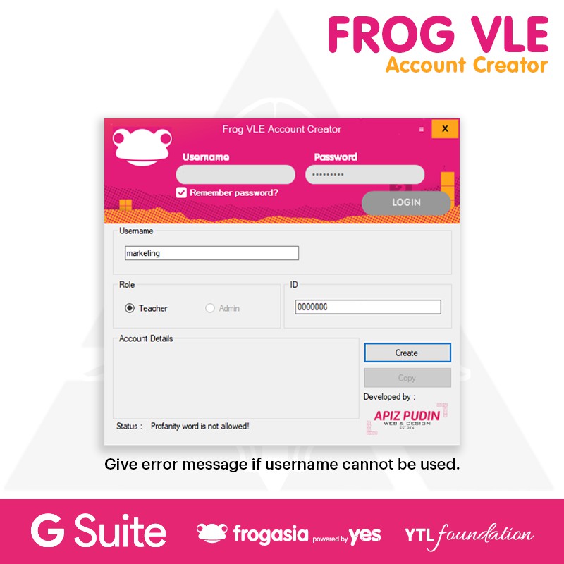 Panduan untuk log in yes id dan password ke akaun vle frog.