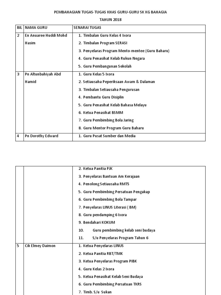 Pembahagian Tugas Program from imgv2-2-f.scribdassets.com March 26 · petaling jaya, malaysia ·. Pekerja sambilan harian in english; Guru besar dan guru senior melayan guru permulaan seperti guru yang sudah lama berkhidmat supaya memudahkan untuk berurusan. For more information and source, see on this link : Kita hendak membuat pengagihan tugas. We are going to have a distribution of tasks. Pada masa sama, syarikat dapat membuat perancangan penyelarasan dan pembahagian tugas kepada pekerja lain sepanjang individu terbabit bercuti, katanya. Pm our page for dedicated account manager service!