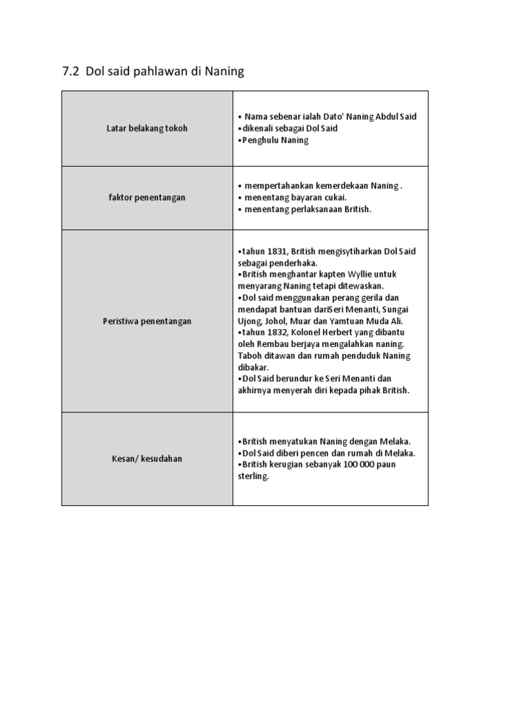 Menyatakan sebab penentangan tokoh tempatan terhadap british. Peristiwa inilah pengakhiran kebangkitan dol said. Penghulu dol said di naning, 2. Dol said menyerah diri kepada pihak british. Yamtuan tunku antah di sungai ujong, 4.